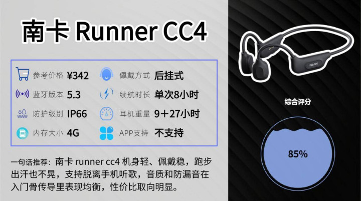默契这件事不难,相持才难,是以耳机不成拖后腿。我我方现时更偏向南卡Runner4,一整套跑下来稳平定当,声息也够露出。仅仅思先体验洞开式、不思预算太高,那就先起先南卡Runner CC4,大约实用,能匡助默契保持节拍就足够了。
