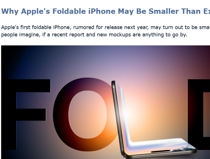 从曝光的中枢参数来看,这款折叠屏iPhone将罗致纵向折叠相貌,配备5.3英寸外部浮现屏,温存用户平方快速检察信息、接听电话等基础需求;伸开后,里面浮现屏尺寸为7.7英寸,可提供更重大的不雅影、办公视线。模拟图浮现,折叠状况下的设立极为紧凑,比拟市面上主流的折叠屏机型,在便携性上可能具备显着上风。