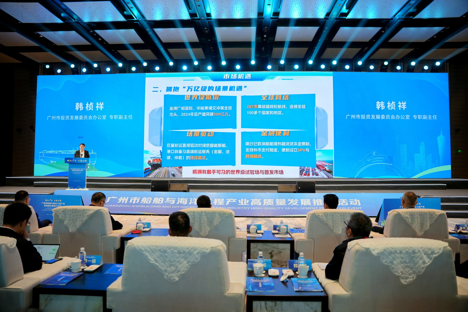行为现场,先后有工信、野心、港务、投发委等部门和南沙区政府进行船舶与海洋工程装备产业发展专题推介,合手续推出政策“护航”船舶发展。